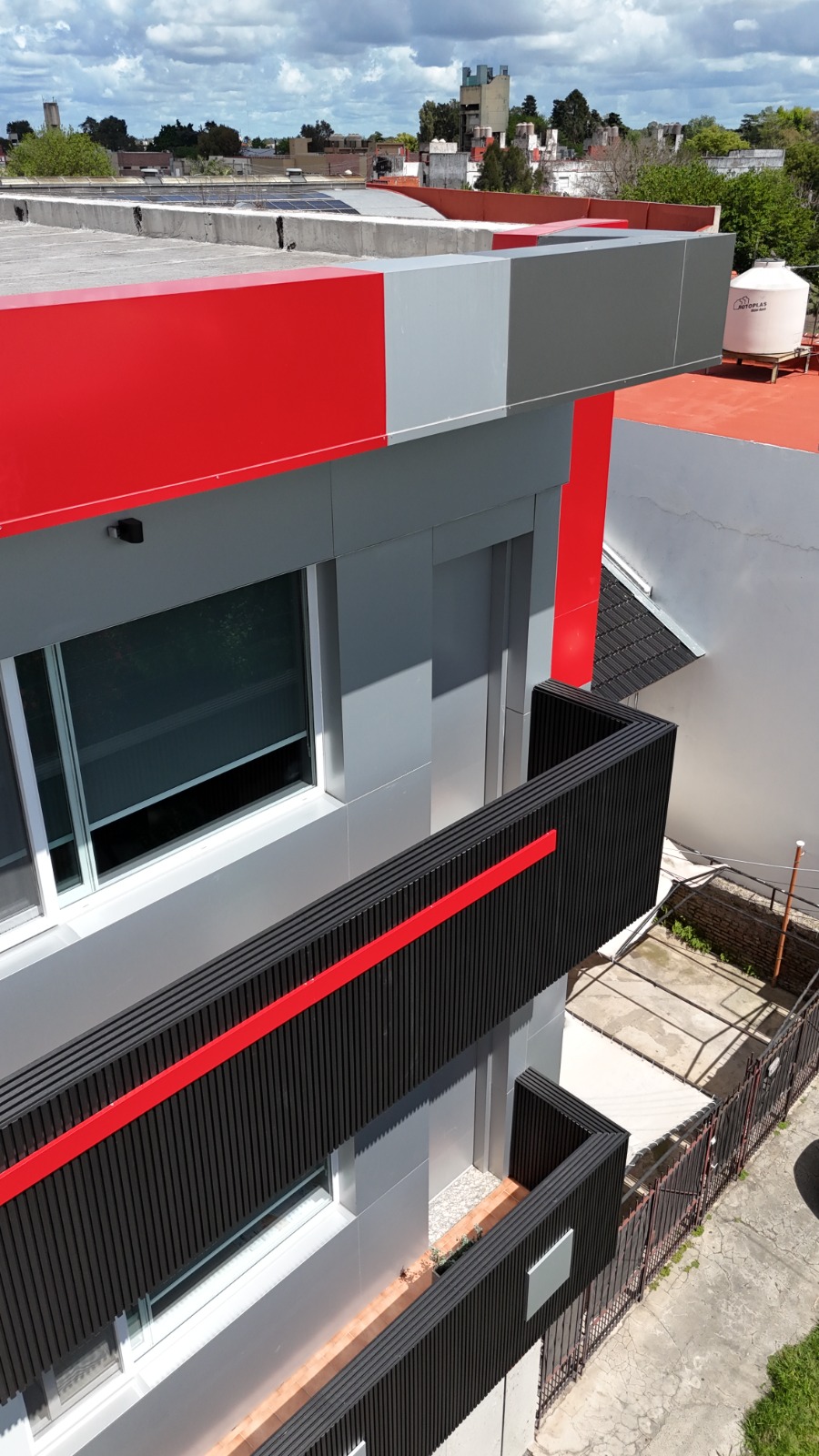 El trabajo incluyó la incorporación de revestimiento en aluminio compuesto para reforzar la identidad visual, optimizar la presencia comercial y generar una lectura más limpia y ordenada de la fachada. La nueva propuesta mejora el impacto desde la vía pública, consolidando una imagen sólida, actual y alineada con la marca.